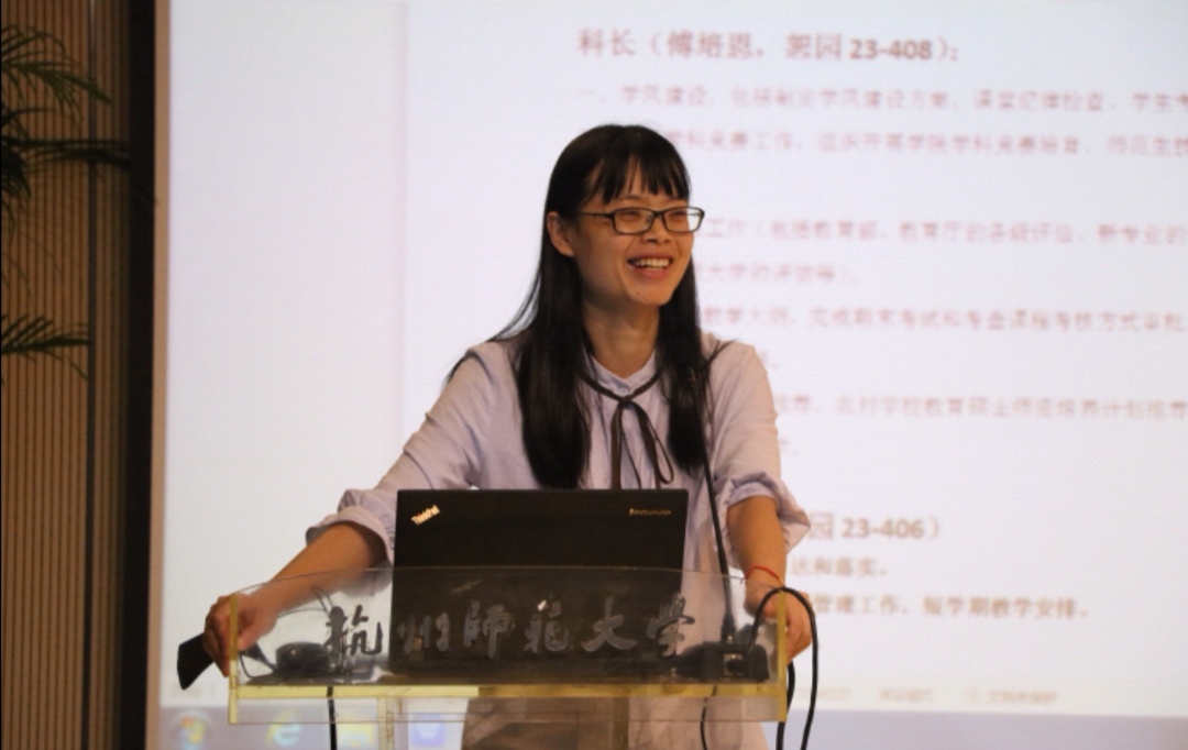 在大会上,余慧菊讲解了新生手册。结合着新生手册相关条文,她解释了各种违规情况及处罚条例,并从考试纪律、心理健康、防范诈骗、人际关系等方面提醒新生强化纪律意识,筑牢安全防线。同时,她以学院品牌化建设为例,希望同学们多参加学生活动,多品读经典著作,培养师德,提高师能,弘扬师风。