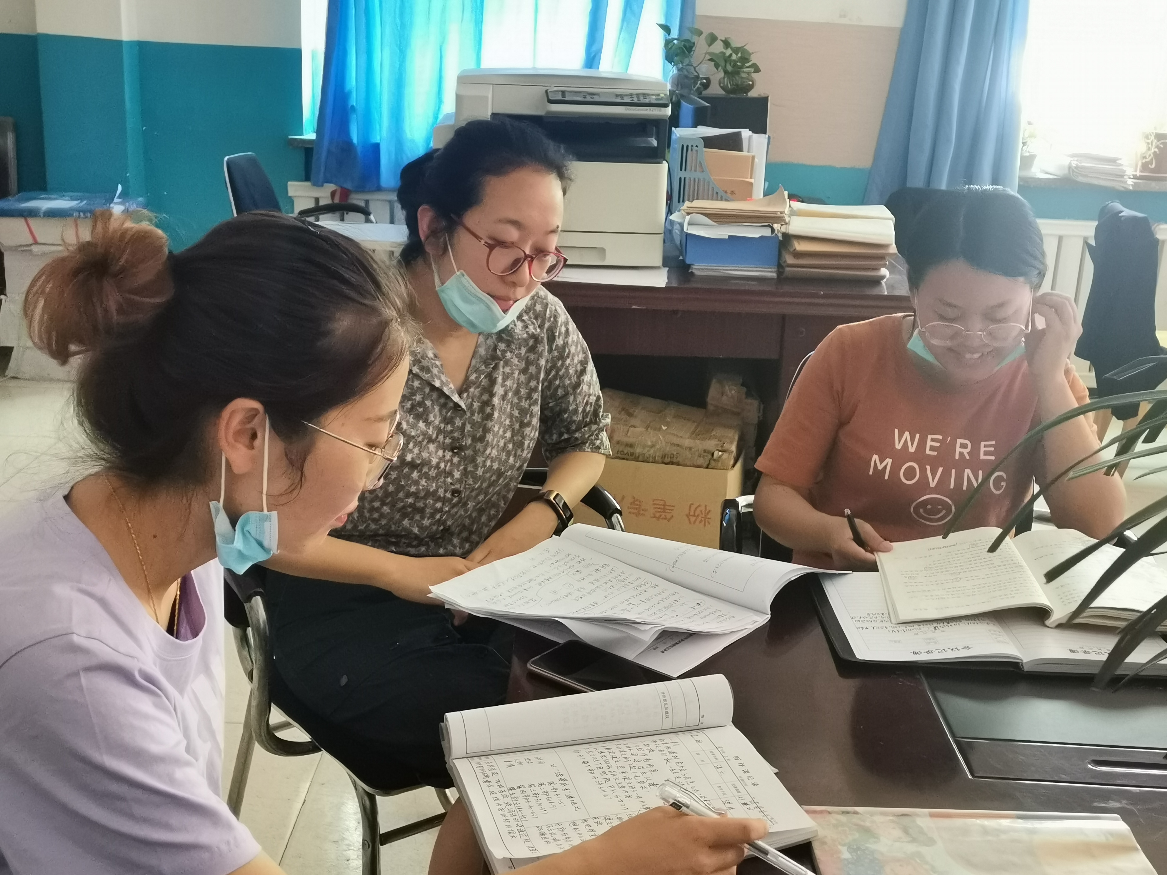 因为疫情,教师们几乎没有周末,都一心扑在教学上。“大家都没有太多的休息娱乐时间,大部分都在谈工作。我们真的就是战友,朝着一个目标奋斗。”孙炜笑着说,“我的师徒队伍已经有9人了,努力争取把队伍做好做大。”