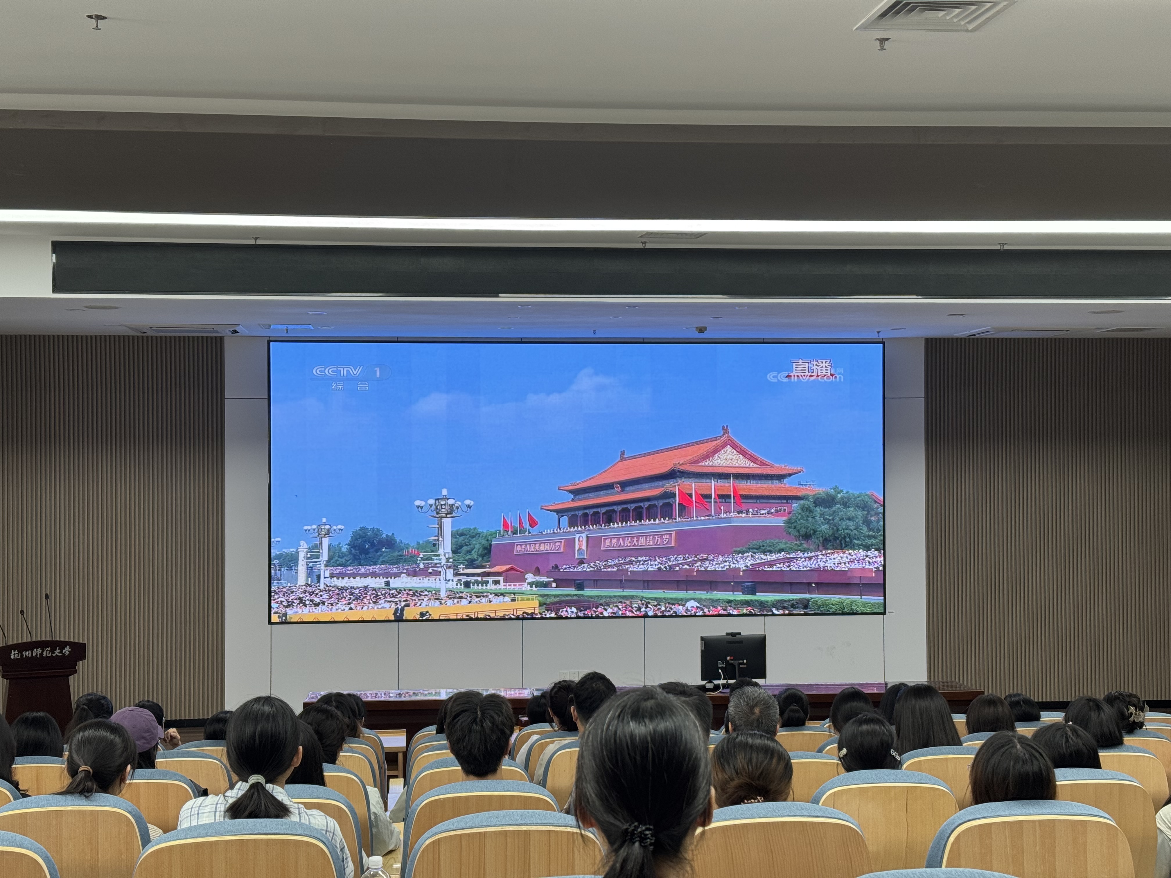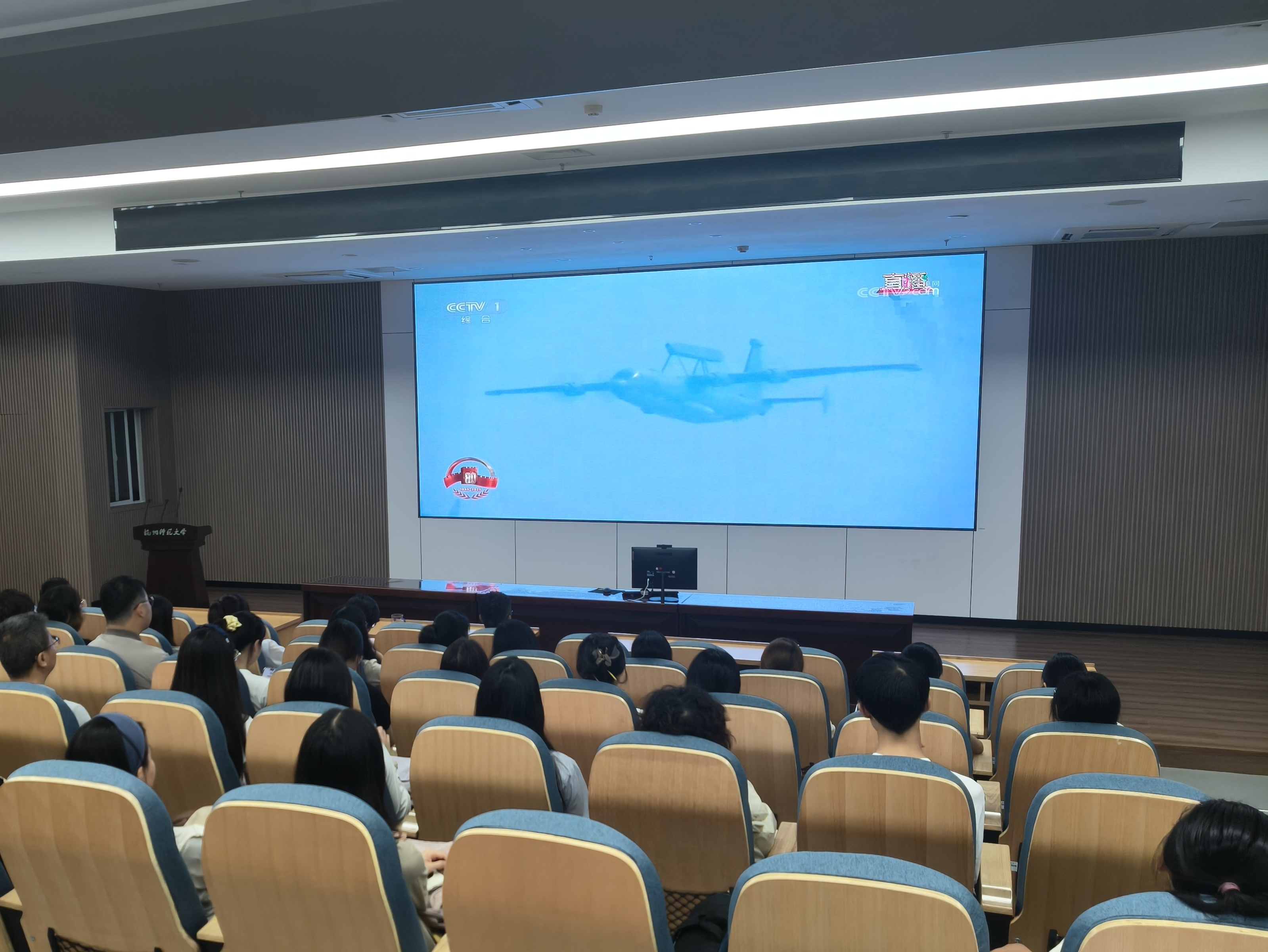 在观看过程中,师生们神情庄重、精神昂扬,每到精彩之处自发响起热烈掌声。三军浩荡,声如千骑疾;铁甲生辉,气卷万山来。受阅部队威武雄壮的强大阵容、昂扬奋进的崭新风貌和一往无前的磅礴气势,深深地感染了在场的每一个人。活动结束后,同学们纷纷表示深受教育和鼓舞。一位观看学生激动地表示:“当一面面写满功勋的战旗迎风而来,我深刻体会到‘正义必胜、和平必胜、人民必胜’的真理,更加坚定了早日加入中国共产党的决心。”