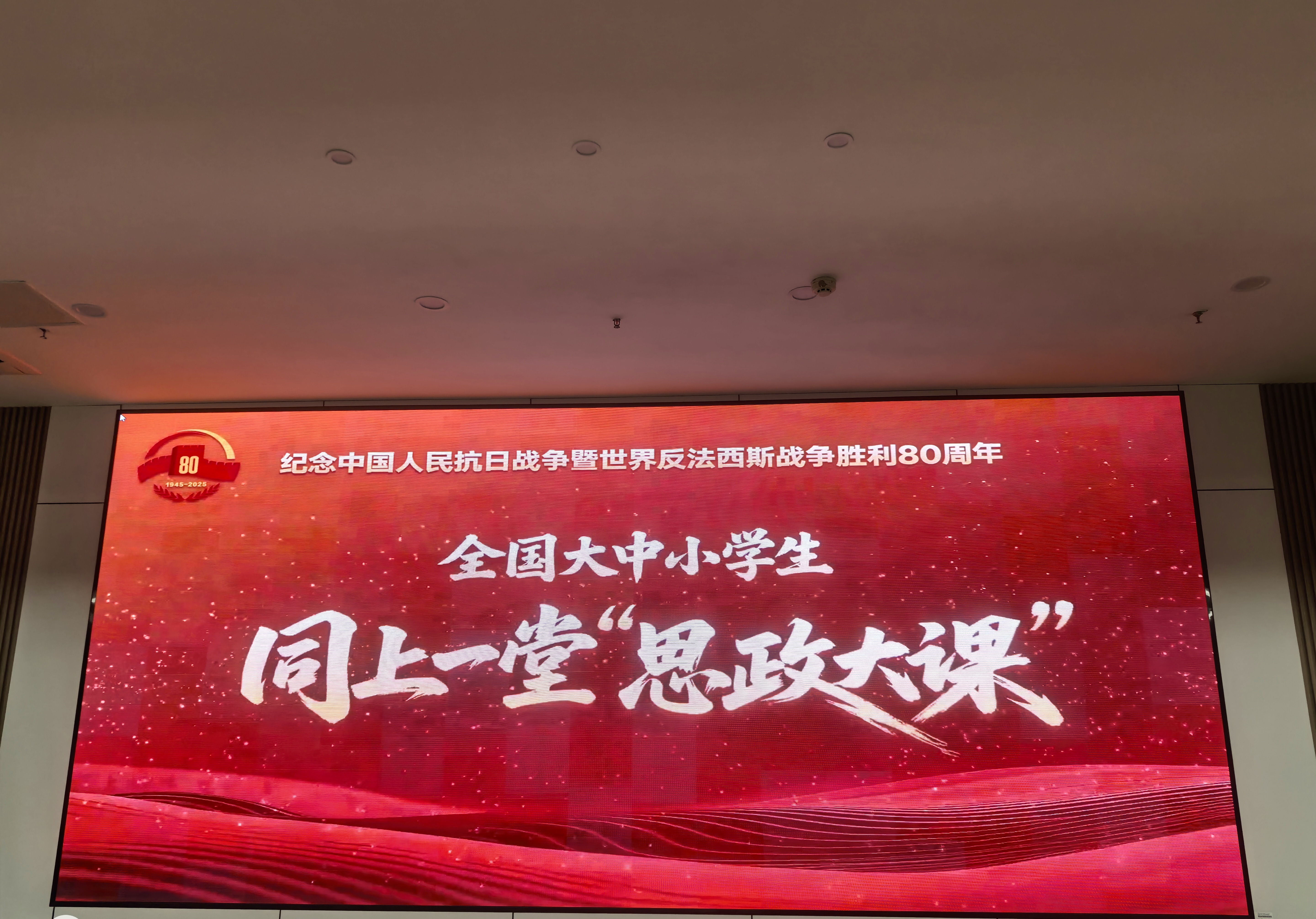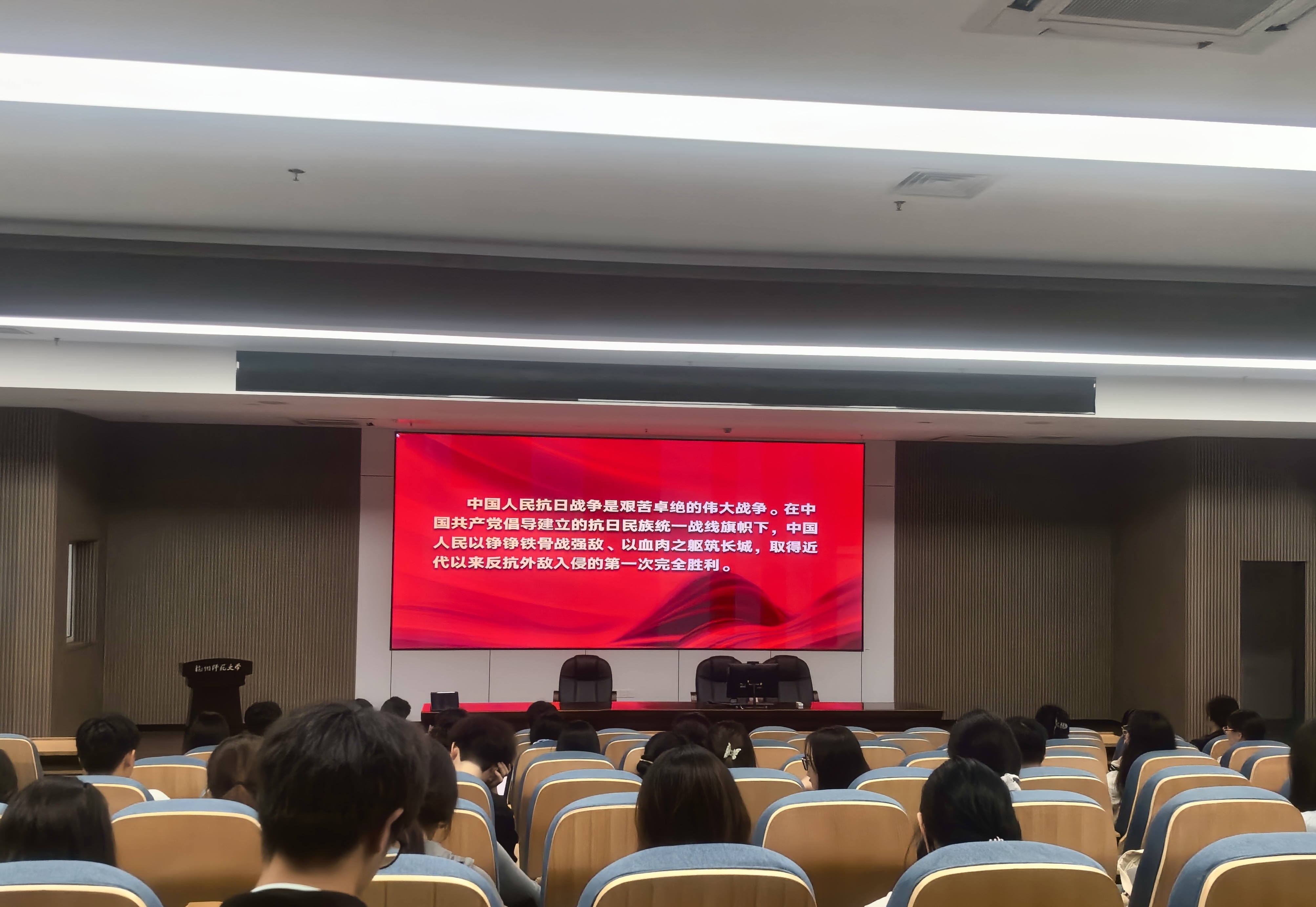 2025年9月18日中午,我院近100名预备党员和入党积极分子在仓前校区弘毅厅集体收看了“弘扬伟大抗战精神 做光荣自豪中国人——纪念中国人民抗日战争暨世界反法西斯战争胜利80周年全国大中小学同上一堂思政大课”大学篇·大国担当。