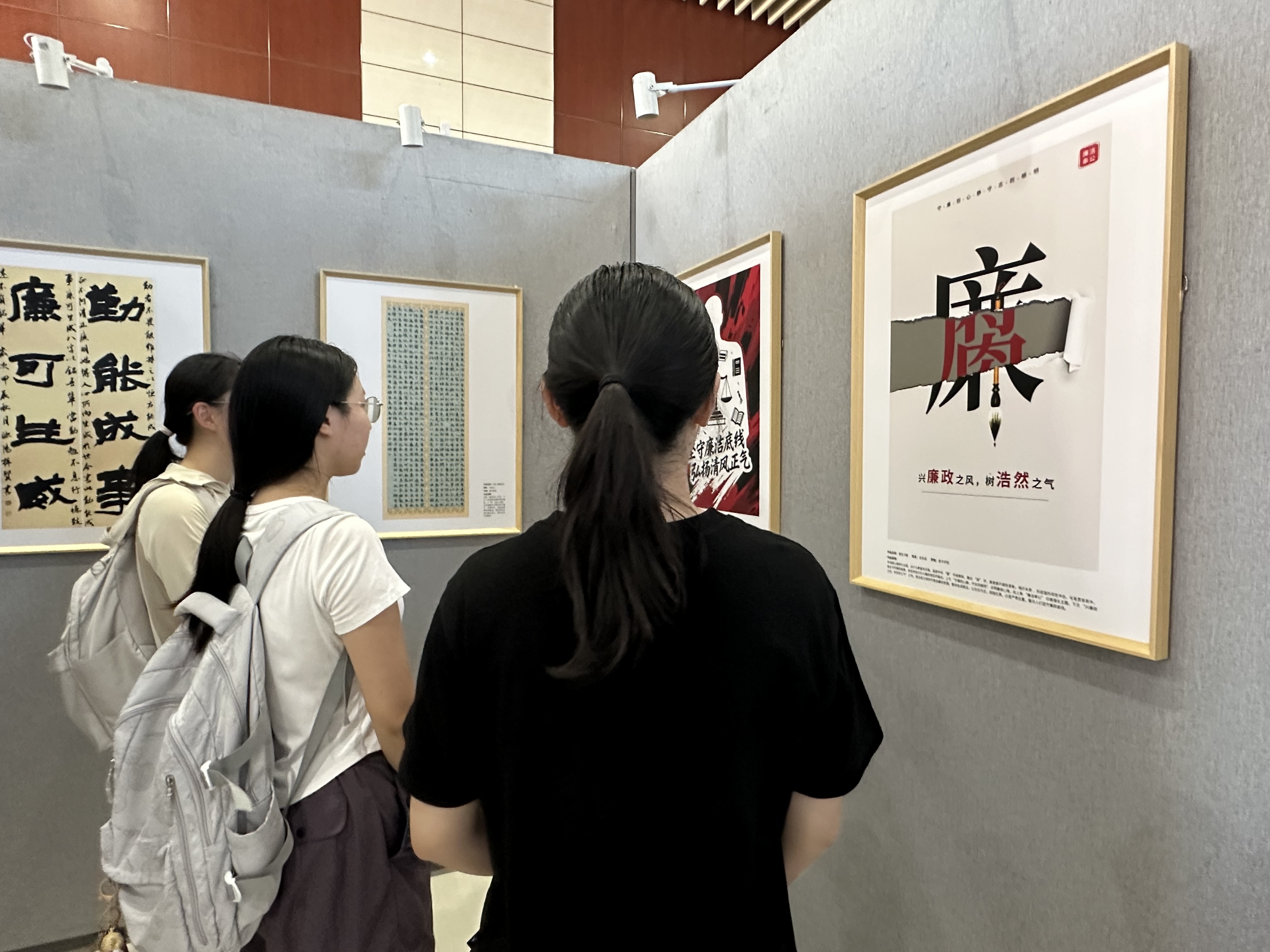 观展过程中,师生们流连于展品之间,专注地欣赏着每一幅作品。他们或驻足凝望,仔细品味作品的深刻内涵;或俯身细察,认真感受每一处细节;或与同伴低声交谈,分享自己独特的见解。活动结束后,大家纷纷表示收获颇丰。一名入党积极分子谈到:“这些艺术作品让抽象的廉洁文化更加具体地展现在我们眼前。在观看作品展之后,我对廉洁文化有了更真切的认识,也更加坚定今后要在学习与工作中恪守道德底线,做一个踏实、正直的人。”