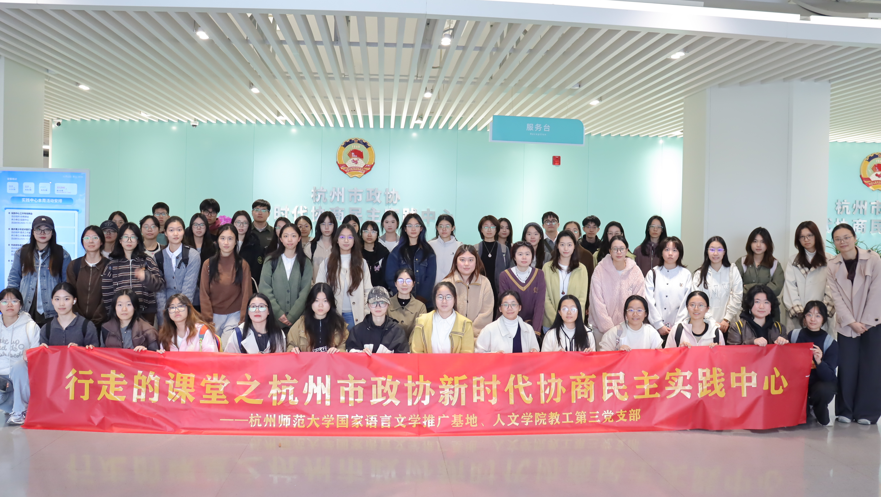 在之江大地,民主不仅是制度层面的设计,更是浸润于城市肌理中的生动实践。2025年11月12日,杭州师范大学人文学院“行走的课堂”第九课正式开讲。人文学院50余名发展对象、新生党员在陈晓玲老师的带领下,先后走进杭州市全过程人民民主实践中心与杭州市政协新时代协商民主实践中心,以一场沉浸式、互动式的学习,感受中国式民主的真实模样。
