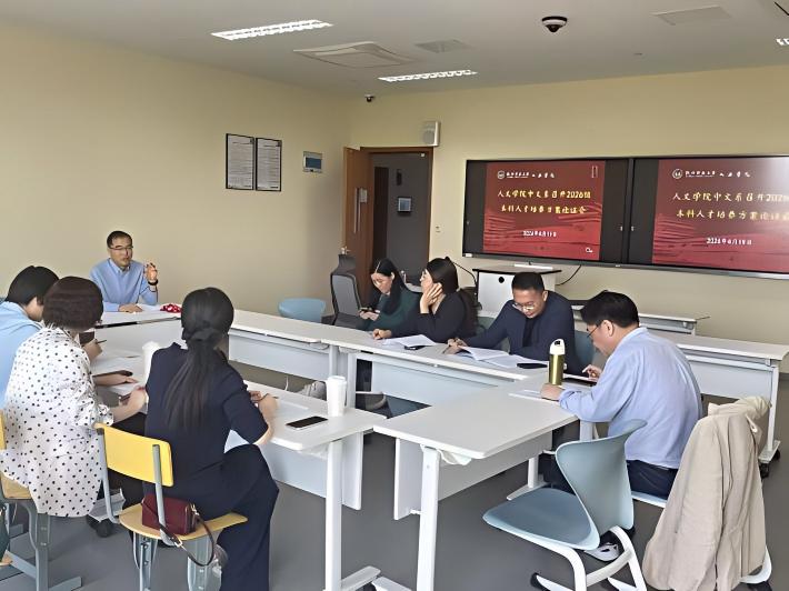 为完善2026级本科人才培养方案,深化本科教育教学改革,切实提升人才培养质量,4月19日,人文学院中文系在诚园6-219会议室顺利召开2026级本科人才培养方案论证会。中文系主任刘小刚主持会议,校外专家、校内教师代表齐聚一堂,共同为人才培养方案建言献策。